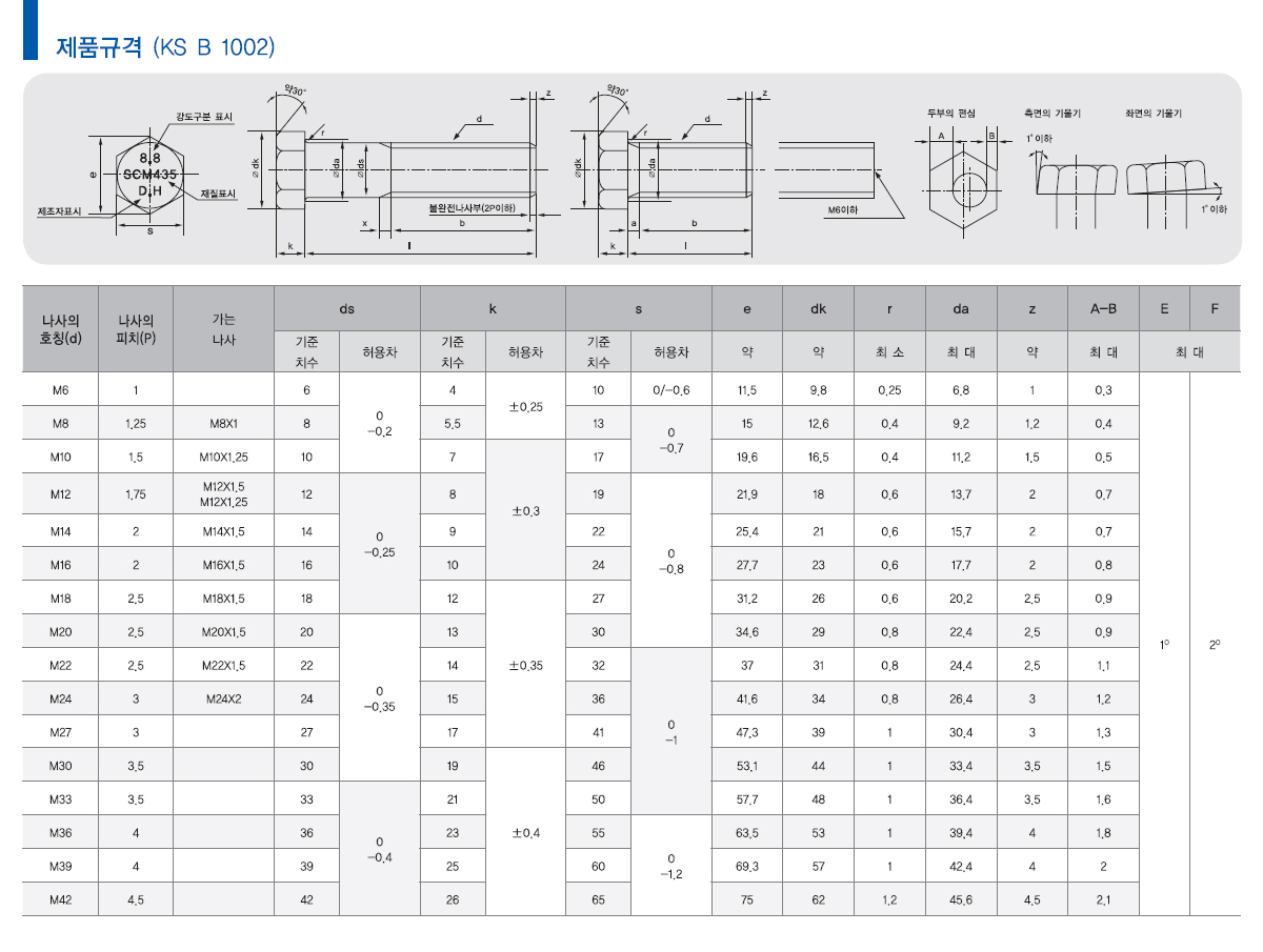 육각볼트 규격표