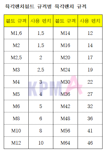 렌치볼트 규격에 대해서는 아래에서 확인하세요.