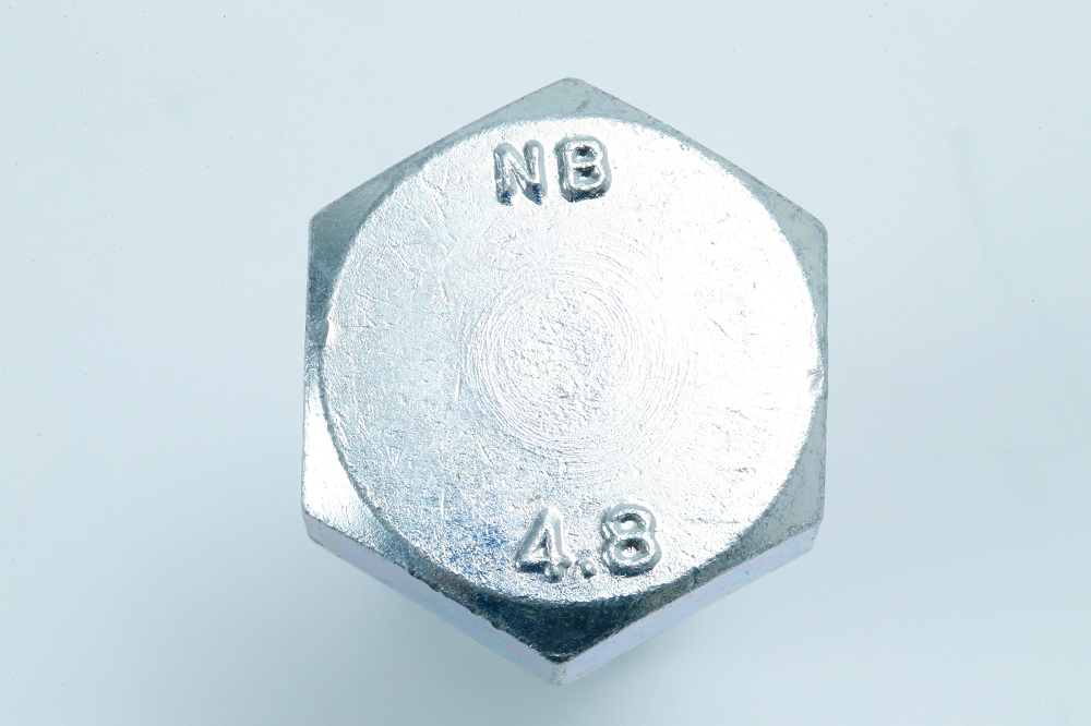 가장 쉽게볼 수 있는 볼트 형태입니다. 위쪽에 새겨진 영어는 제조회사를 나타낸 것이고, 아래에 보이는 4.8은 강도를 표기한 것입니다.